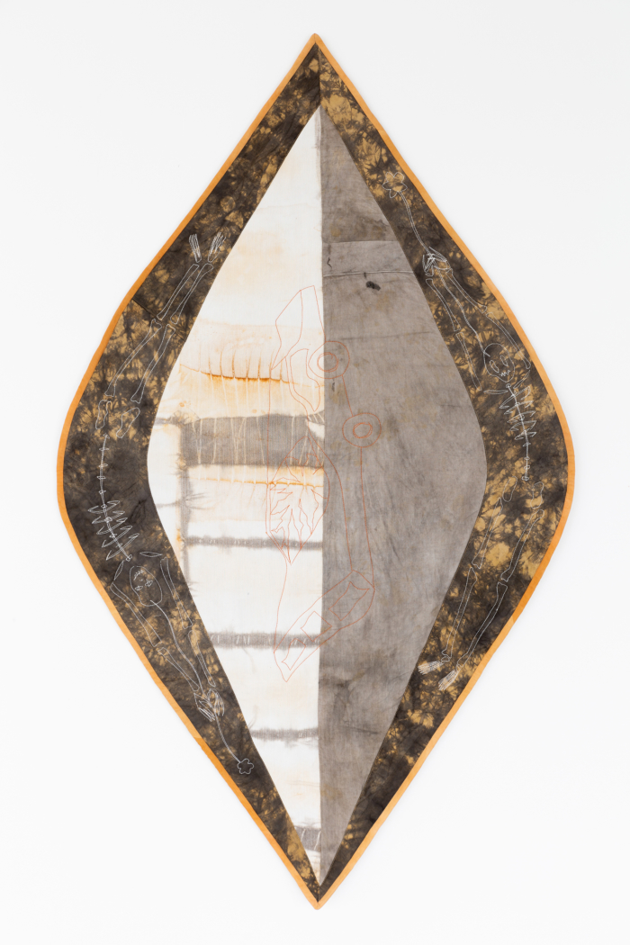 Calling into question the positioning flexed in the reading and writing of history, Anna Reutinger’s quilts reference medieval depictions of the wound in the side of Christ portrayed vertically to resemble a vulva. Bringing the symbolic, ornamental and illustrative into tension, Reutinger produces a layering of imagery which appears to be one thing from a distance but another upon closer inspection. Stitched from a combination of her own drawings and those of Ámundason, these works produce neo-heraldic symbols—not those denoting prestige or elitism but rather signaling the end of hierarchy, between types of labor, between humans and non humans, between genders and materials.