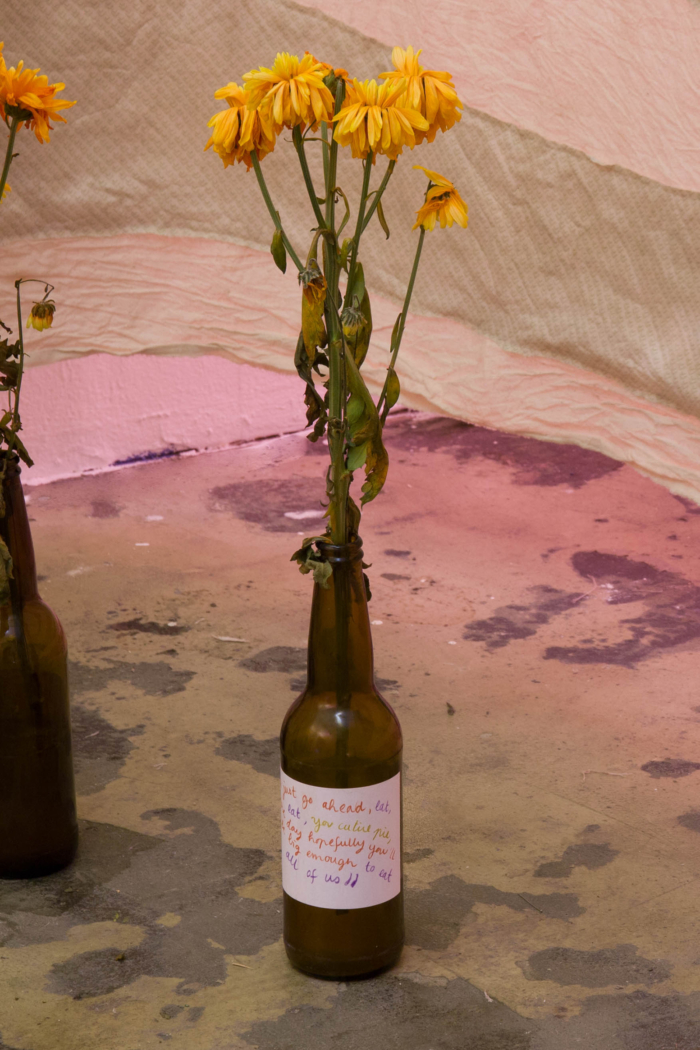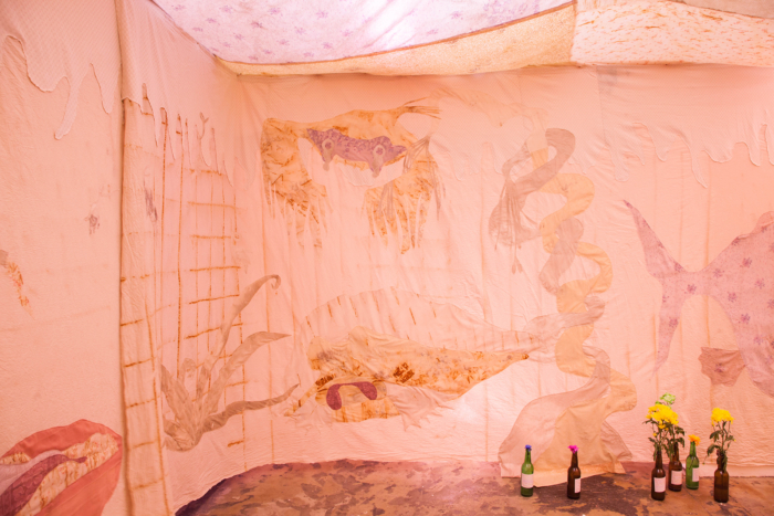 Bed sheets, cotton canvas, coffee, beets, onion skins, rust, beer, dahlias, soundtrack